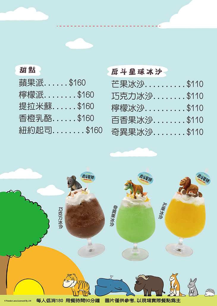 特別推薦:紐約起司蛋糕、提拉米蘇蛋糕、芒果冰沙、巧克力冰沙、鮮奶茶、奶蓋紅茶、韓柚水蜜桃氣泡飲