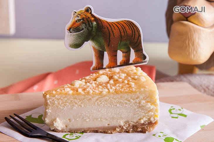 精緻可口的紐約起司蛋糕,散發濃郁奶香與起司的香甜滋味,蛋糕上方佈滿著起司粉,香氣四溢,軟綿至極,與戽斗老虎的斑紋頗為相似,深受大小朋友喜愛的美好滋味一定要嚐鮮一次!