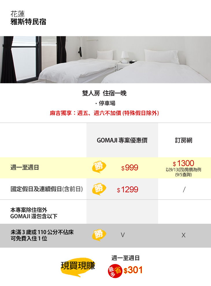 ➌麻吉獨享:週五、週六不加價(特殊假日除外) !