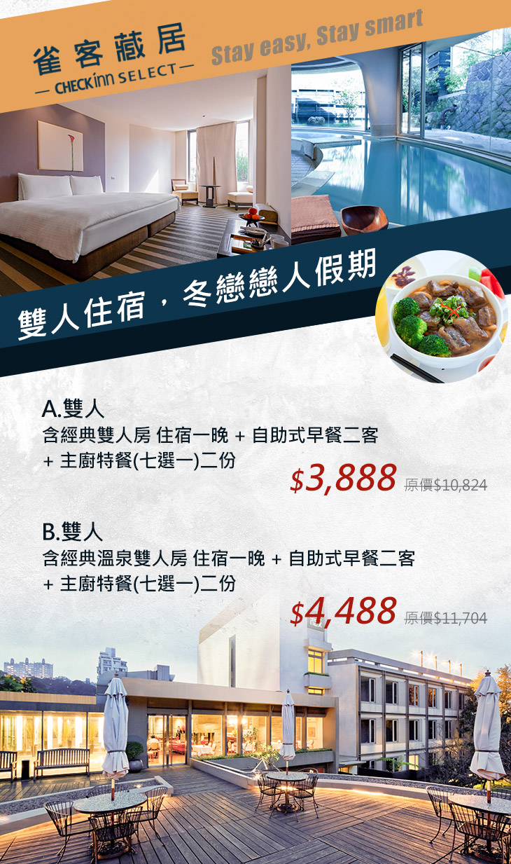 ★ 今年冬天,雙人一同出遊,住宿含自助式早餐與主廚特餐,讓您吃得開心,玩得也開心!