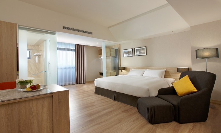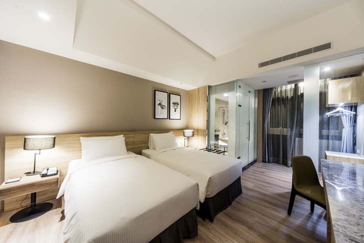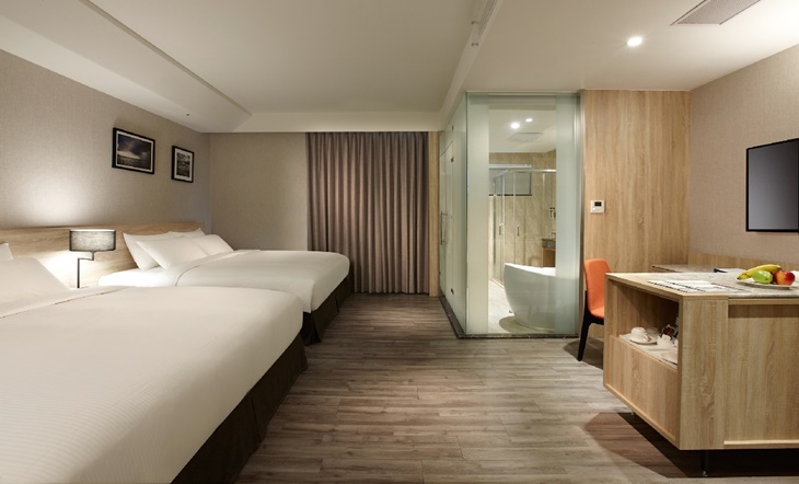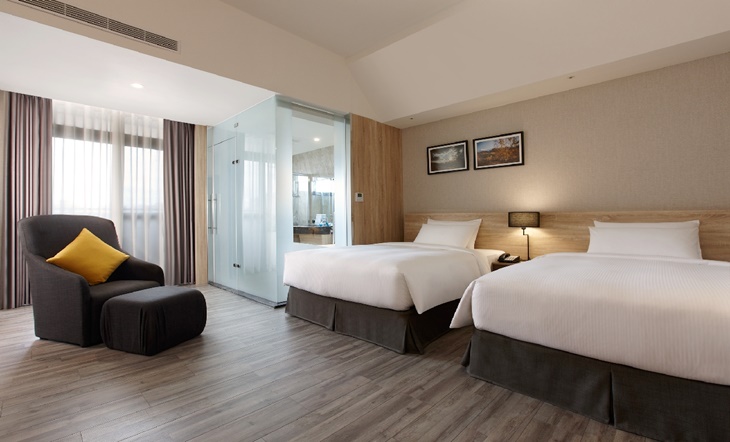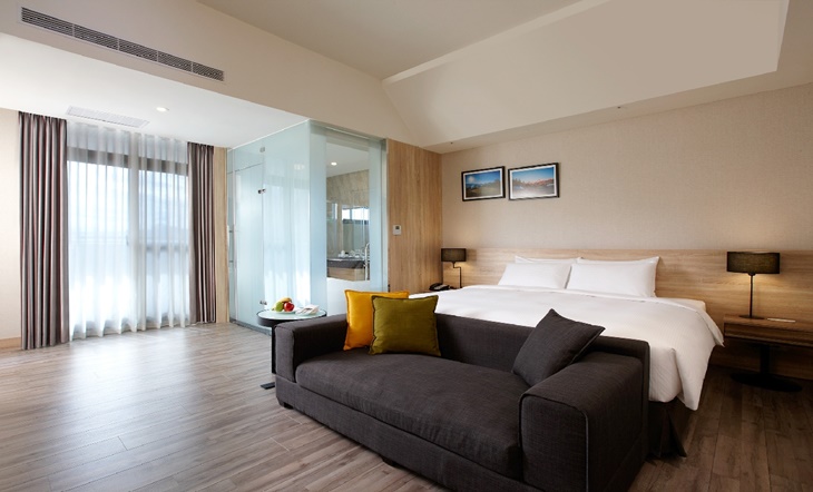 寬敞舒適空間,好眠床組搭配頂級寢具,打造出最輕鬆自在的房型,讓您能夠卸下所有疲勞,盡情享受專屬的靜謐時光。每間房間都附獨立空調系統、專屬陽台、環保木質地板、辦公桌、浴室多功能暖風機、溫水洗淨座、吹風機、體重計、保險箱、晨喚服務、無線/有線高速網路、110V插座。