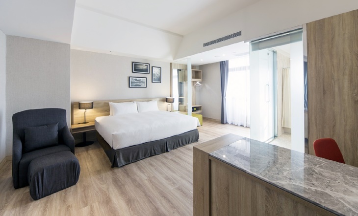 8坪舒適空間、好眠King Size床鋪、獨立市景陽台、最輕鬆自在的個人房型,邀您享受專屬的靜謐時光。