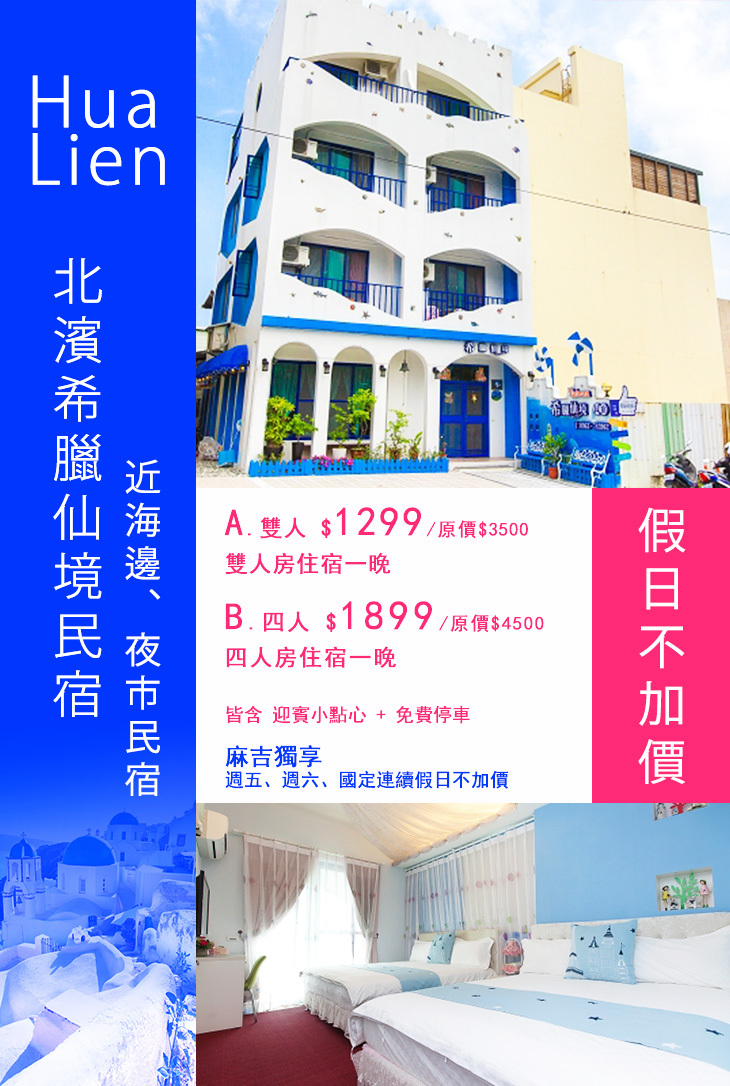 【花蓮-北濱希臘仙境民宿】感謝麻吉們熱烈搶購,已全數賣光光。