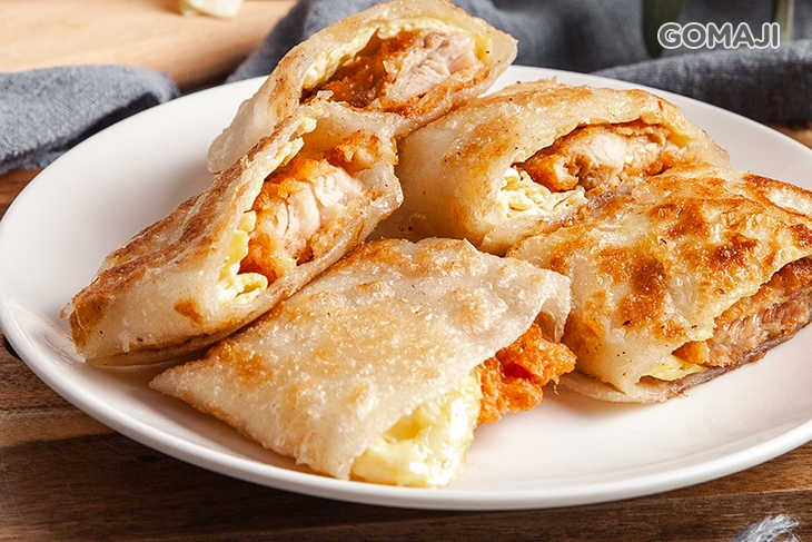 培根蛋餅、鮪魚蛋餅吃膩了嗎?不妨嚐嚐這道,以卡拉雞腿這奢華的食材作為蛋餅內餡的組合吧!烹飪得金黃酥脆的蛋餅皮,入口焦香迷人、不油膩!搭配外酥內軟、用料實在的現炸卡拉雞,雙重組合,迸出令您我都意想不到的驚喜與口感。單吃感受卡拉雞的美味,或佐一點醬提味,口感更富有層次喔。
