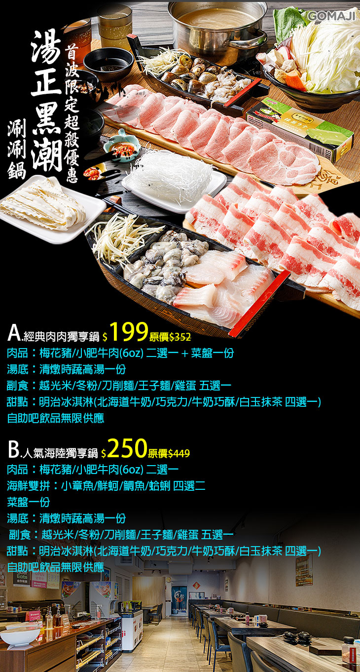 超正點的涮涮鍋美味,揪您來店品味!地點鄰近捷運新莊站,以正點的食材及正點的湯底聞名的【湯正黑潮涮涮鍋】,整潔明亮的用餐環境,帶給您驚喜萬分的鍋物享受。