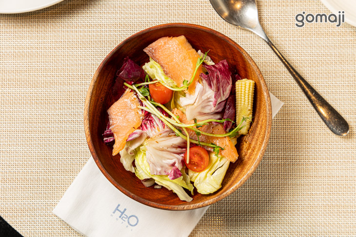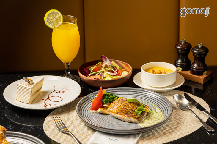 使用品質優良的鱸魚料理。透過主廚精湛的手藝用心烹調,煎至恰好的熟度後盛盤上桌,熟度恰如其分的肉質,柔軟且緊實有彈性,於味蕾之上綻放自然鮮甜,搭配蔬菜與醬汁,為整體擺盤更添高貴的氣息,五星等級的奢華饗宴,不沾任何調味料也韻味無窮!