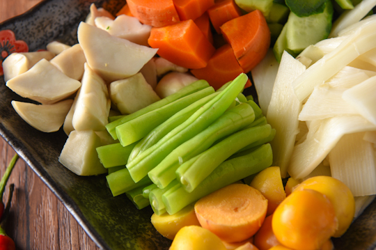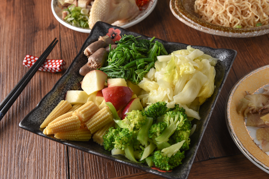 花椰菜 / 玉米筍 / 龍鬚菜 / 高麗菜 / 四季豆 / 杏鮑菇