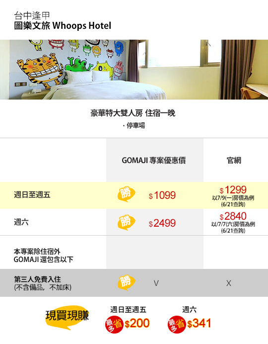 【台中逢甲-圖樂文旅Whoops Hotel】感謝麻吉們熱烈搶購,已全數賣光光。