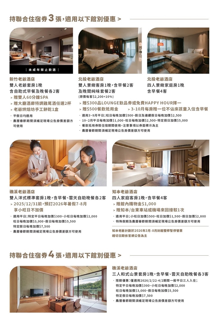 雙人/四人一泊二食住宿券,平日(週一至週四)視房況享入住免費升等