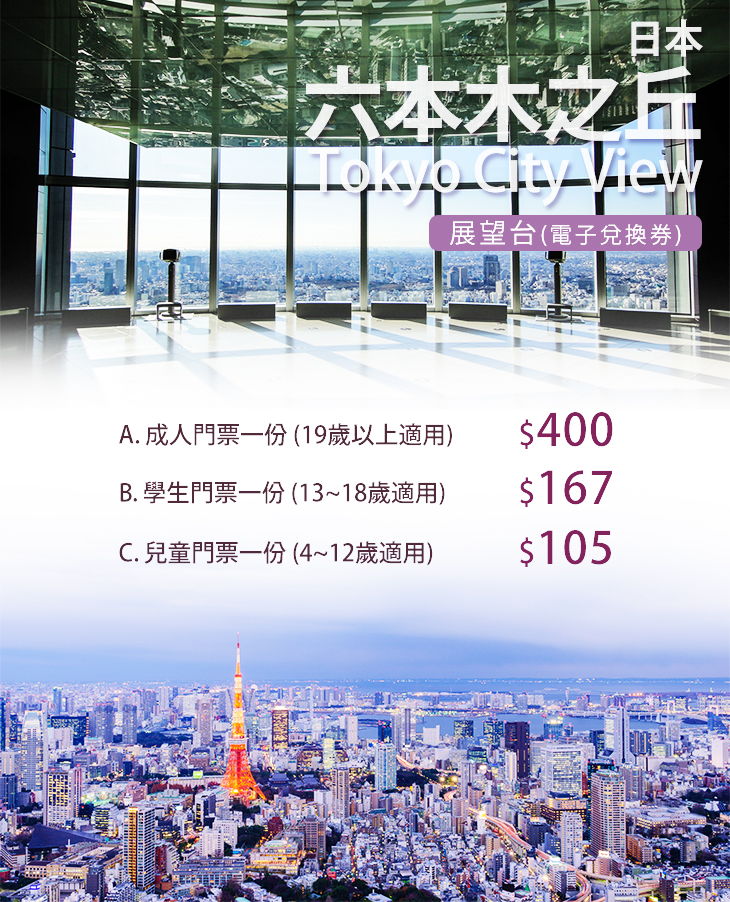 【日本-六本木之丘Tokyo City View展望台(電子兌換券)】感謝麻吉們熱烈搶購,已全數賣光光。