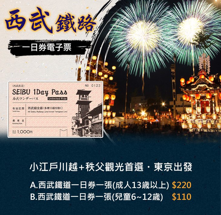 西武鐵道一日券電子票(小江戶川越+秩父觀光首選・東京出發)