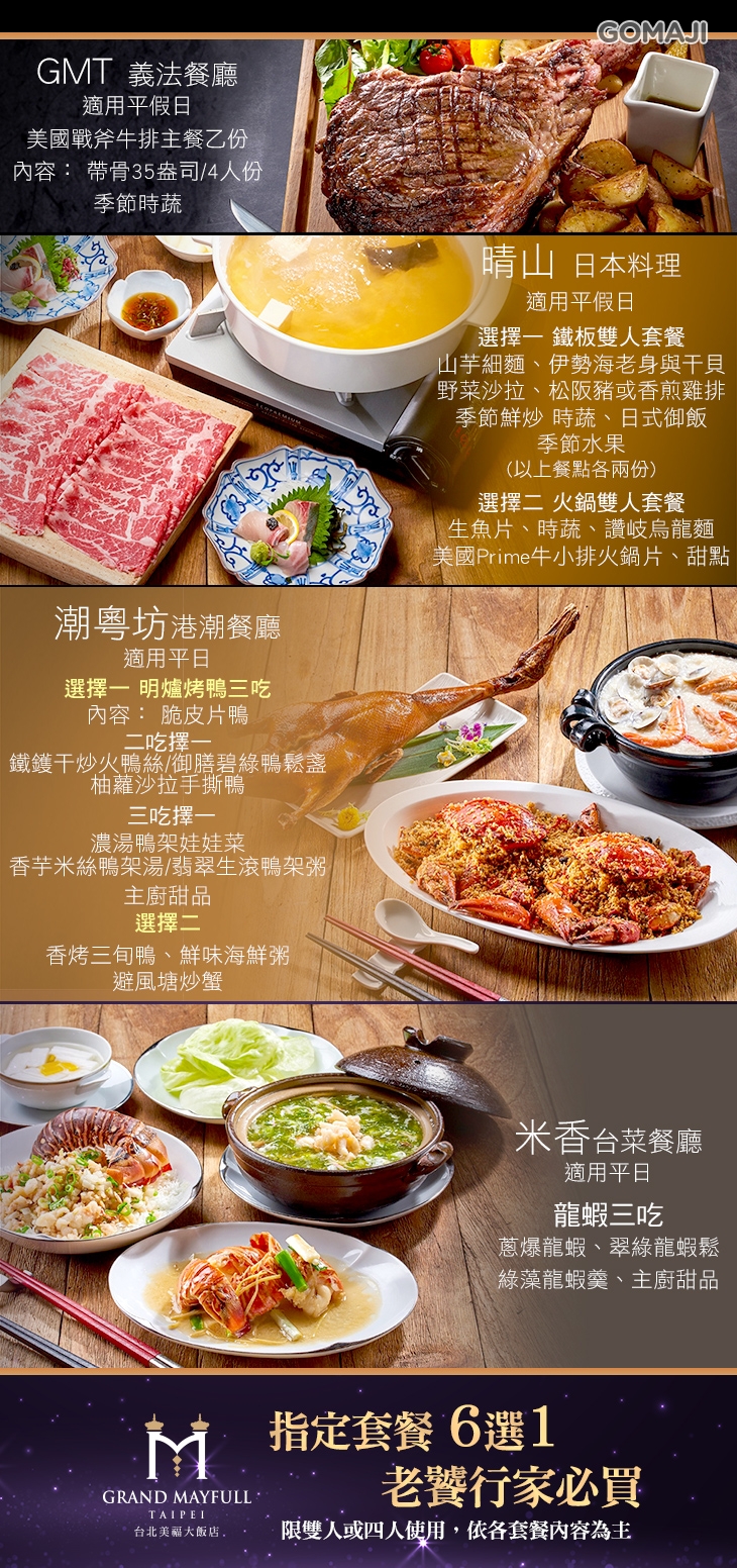 台北美福大飯店-潮粵坊港潮餐廳/米香台菜餐廳/晴山日本料理/GMT義法餐廳