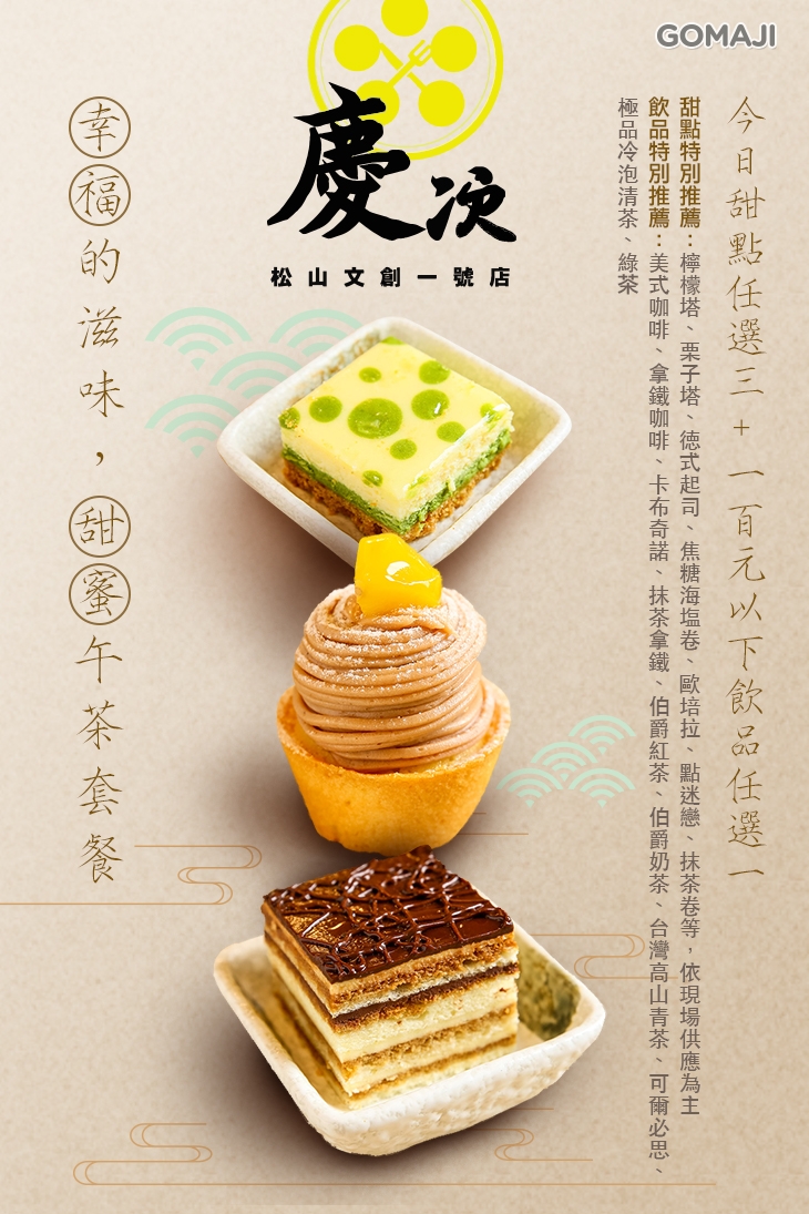 松山文創美食地圖又添一欄!首次合作的慶次咖啡位於松山文創一帶,以日式風的餐點及京都味的甜點為主要特色,各式甜點皆出自大飯店名師之手,如此厲害的背景,身為甜點控的您怎麼能錯過!
