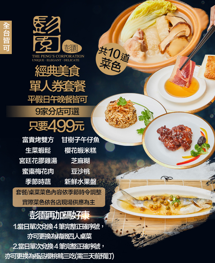 || 經典美食單人券套餐(共10道菜色) ||(平假日午晚餐皆可使用)