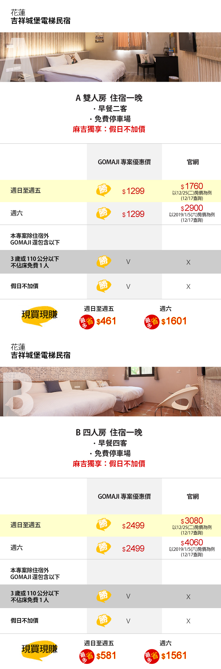 【花蓮-吉祥城堡電梯民宿】感謝麻吉們熱烈搶購,已全數賣光光。