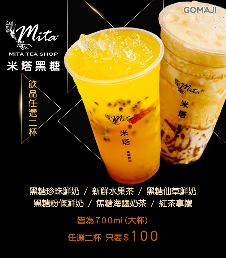 什麼!米塔除了賣義大利麵、麵包還出時下最夯的黑糖飲品!?時代在變,飲食潮流也要不斷精進求變!近臨江街觀光夜市!【米塔黑糖】用創新、用創意,品牌再突破!經長時間的累積,米塔夥伴們用經驗與歷練共同研發出這款,現今超紅、超人氣的黑糖手搖飲品。堅持手工拌炒黑糖、新鮮現煮珍珠,讓您在一品美味飲品的同時,也能健康又放心!本次GOMAJI特別深入通化街,為各位再開發飲品新大陸!讓您在逛夜市、吃小吃的同時,渴了有【米塔黑糖】人氣手搖陪伴您!