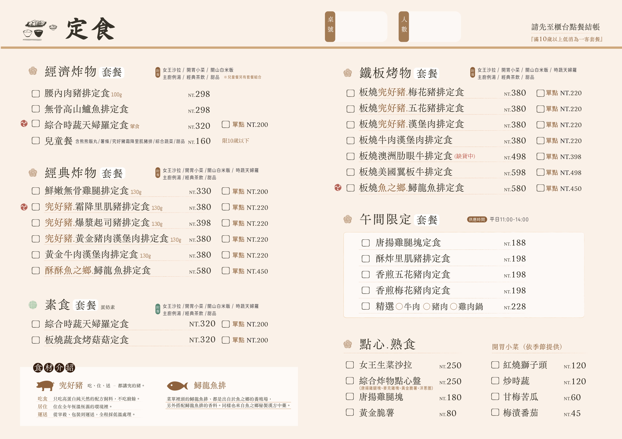 ※ 菜色內容依季節時令調整,實際菜色、價目依現場提供為主。