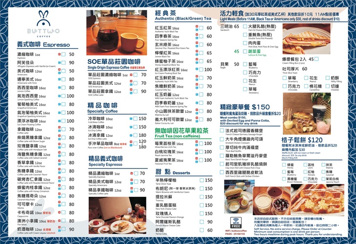 洋白兔精品咖啡 Buttwo Coffe MENU(點圖可放大)