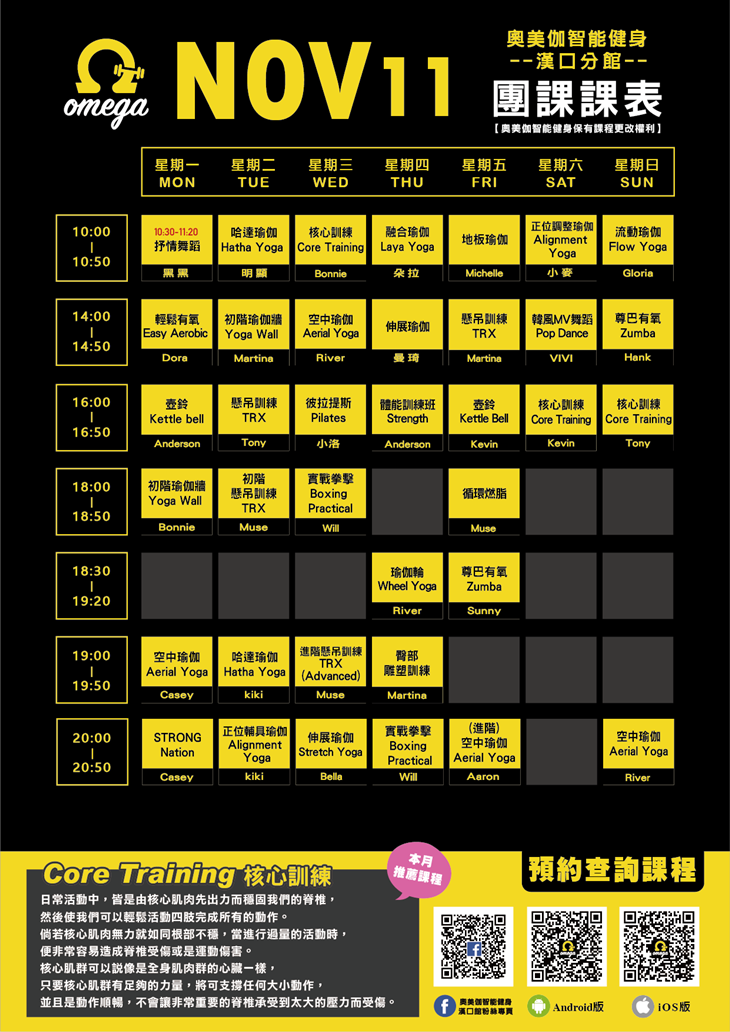 奧美伽引領健身業界黃潮,斥資近500萬首創AI科技智能運動館,會員如擁有健身品牌藍寶堅尼的尊榮品味,進場配戴專屬智能手環,整合感應鎖櫃、優質的更衣空間,搭配先進藍芽傳輸,替您有效整合並記錄所有健身的大數據,完整傳輸在奧美伽App!透過全方位的規劃,提供豐富的專業課程,幫助您培養運動習慣,實踐您對運動的目標,盡情揮灑汗水、釋放壓力!