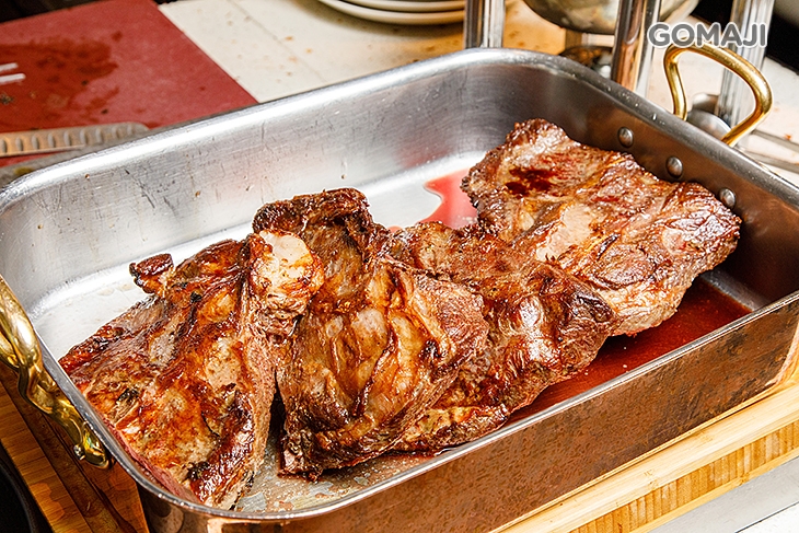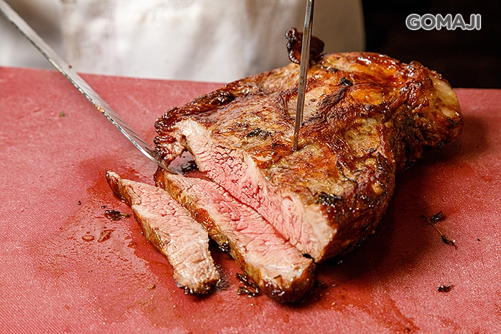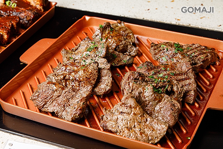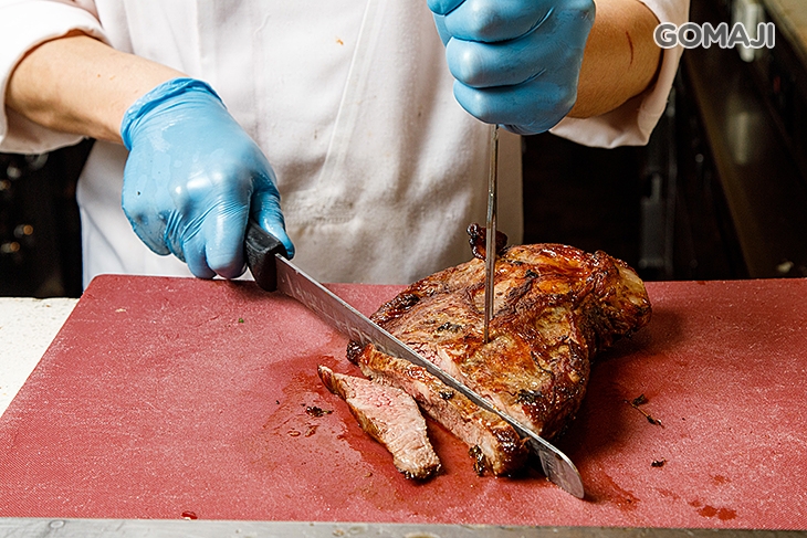 由師傅現烤現切的大份量牛排,將一整塊牛排燒烤得噴香誘人,讓整個餐廳中的人都不禁聞香而來,師傅直接現切,為您獻上的美味,讓您享受來自牛肉原汁原味的魅力,絕對是不容錯過的一品!