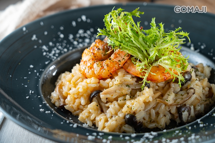 主廚每日現熬的新鮮白蝦湯,放入粒粒分明的白米飯,再佐以香氣馥郁的菇類,烹煮出一道富滿鮮蝦甘甜的奶油燉飯,在濃郁的奶油香氣中,品得到蝦子的鮮甜與甘美,使整體嚐起來濃而不膩、香醇順口,大力推薦給您!