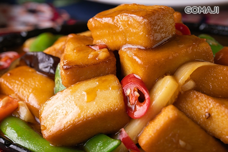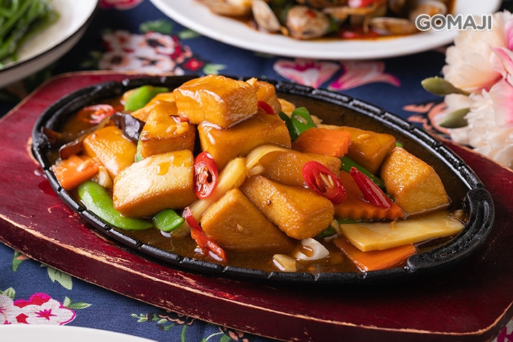 料理得上色又入味的嫩豆腐,微甜微鹹的滋味,不但沒有蓋過豆腐原有的美味,更為豆腐創造不同風味,加入一點蔥花與辣椒增添香氣與色彩,每一口都讓人難以忘懷!