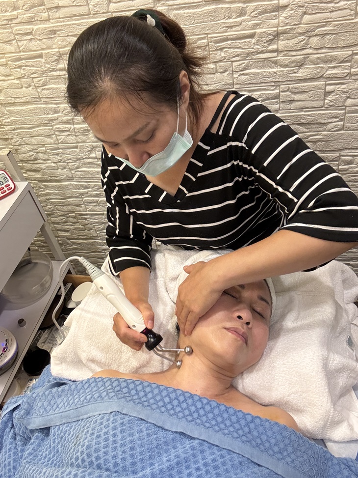 〈臉部檢查膚況 + 老化角質清潔 + 淨膚保濕精華導入 + 臉部呵護按摩 + 微電流臉部拉提按摩 + 撫紋軟膜(同時頭部舒緩指壓+放鬆肩頸按摩) + 茶飲〉