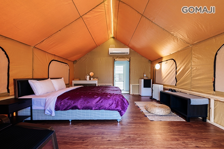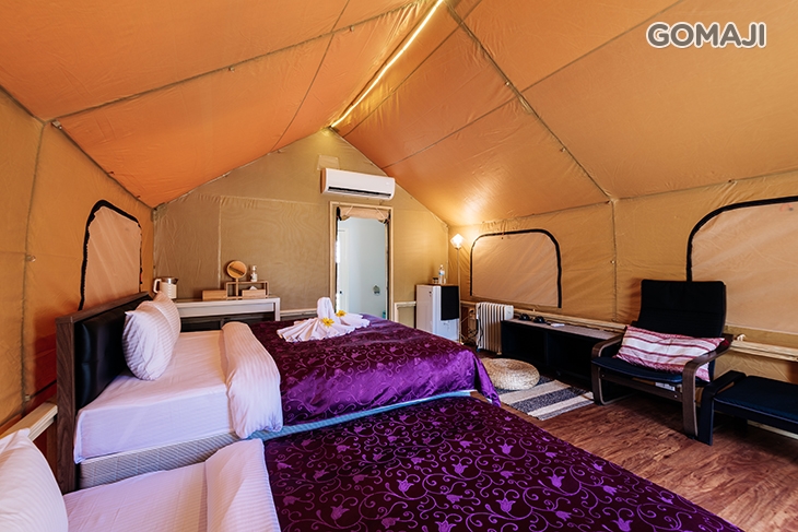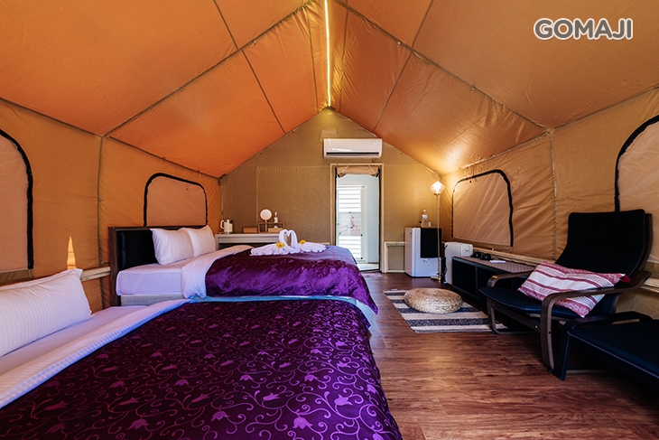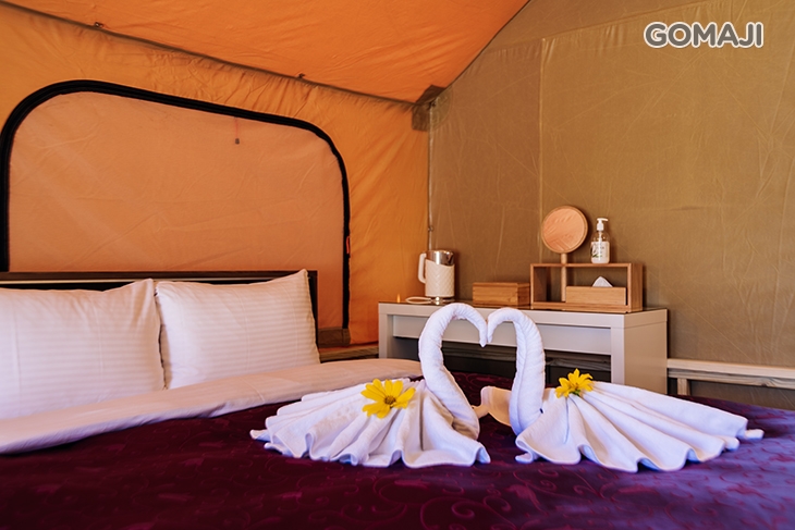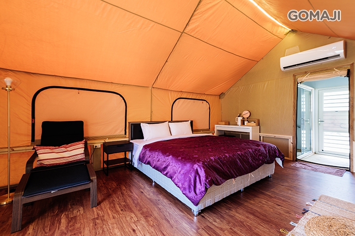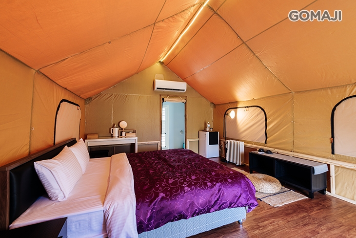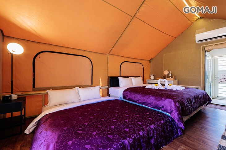 一踏進房內,貫穿的景象,彷彿擁有了無限開闊的視野,您一定會被這寬敞的空間給驚艷!被一片翠綠所包圍的豪華狩獵帳雙人房,讓您遠離都會喧囂,有一處能逃離繁忙生活,好好充電的地方,房內設備齊全,質感完全不輸外面的房型,給您貼近自然的愜意!此時此刻,所有煩惱都拋開,好好享受這難得的美好吧!