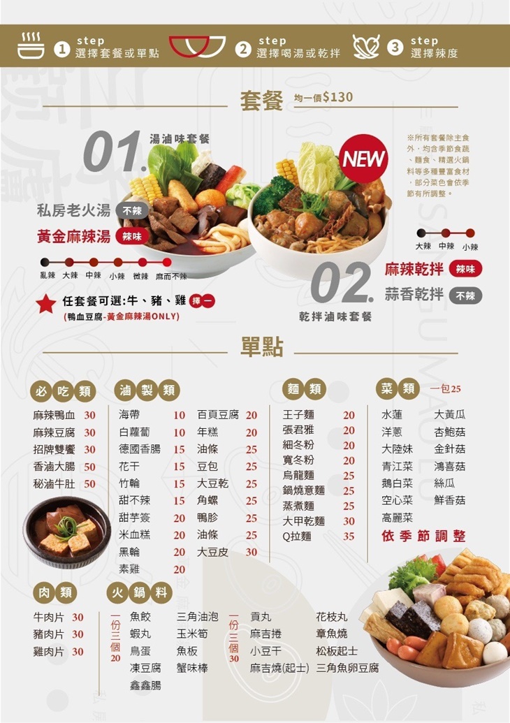 麻辣豆腐 麻辣鴨血 招牌雙饗 香滷大腸 秘滷牛肚