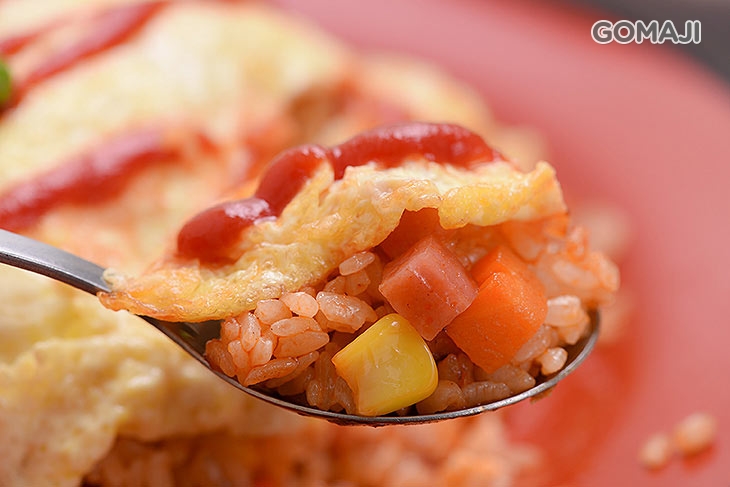 招牌必點的蛋包飯,金黃飄香的蛋皮,包覆著滿滿香濃可口的茄汁炒飯,烹炒得粒粒分明的白米,被番茄的橘紅渲染得十分均勻,熱呼呼入口,豐盈且爽口的番茄果香,和米飯甘甜的原味一拍即合,當中還有玉米粒、紅蘿蔔、火腿…等佐料點綴繽紛口感,每一次咀嚼,都是令人驚豔的味覺饗宴。