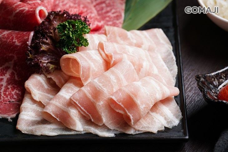 嚴選松阪豬,粉嫩的色澤展示了它的新鮮度無庸置疑,油脂均勻的分佈在豬肉之中,美麗的花紋,在湯頭輕涮一下,便能品嚐滑嫩的美味!