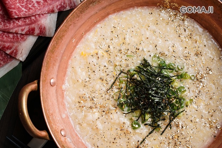 店家發揮創意巧思,將剩餘湯汁加入白飯、青蔥等熬煮成黃金稀飯,帶著湯汁的鮮甜,融合鍋物美味,入口盡是自然享受!