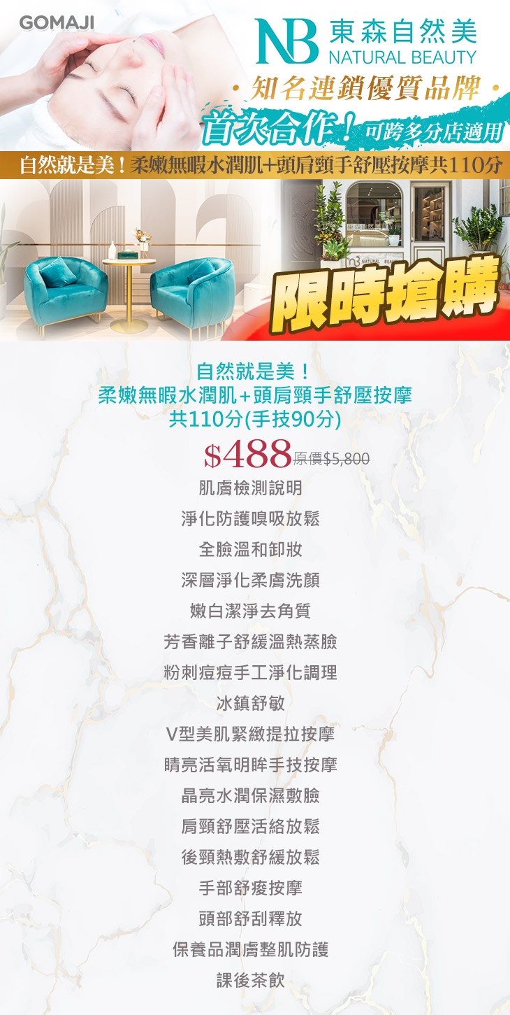 自然就是美!柔嫩無暇水潤肌+頭肩頸手舒壓按摩共110分(手技90分)