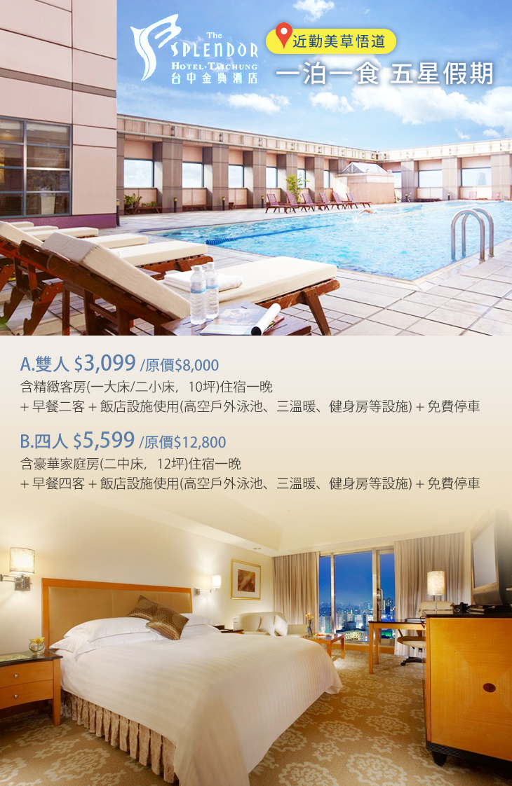 ★ 提供雙人/四人舒適客房,可依入住人數選擇,專案提供豐盛自助式早餐使用,讓您睡得好、吃得飽、暢遊台中沒煩惱。