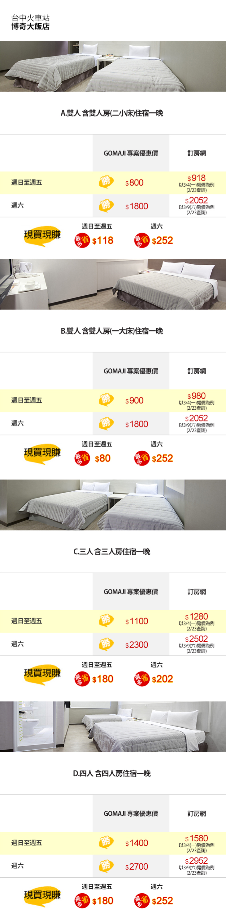 【台中火車站-博奇大飯店】感謝麻吉們熱烈搶購,已全數賣光光。