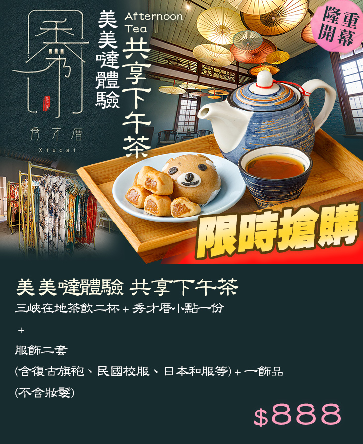 踏入隱身三峽老街-秀才的百年古厝,帶您回到民初時代的台灣興盛老鎮“三角湧”!旗袍體驗不只台南限定,位於三峽老街也有讓人驚豔的文化體驗!【秀才厝】提供古色古香的古厝環境、優美典雅的攝影空間、精緻美味的三峽在地茶飲及特色糕點,另外,還有提供復古旗袍、民國校服、日本和服等服飾體驗,讓您享有穿越時空的難得時光,一秒變身古典美人!不只適合與閨蜜好友前往,與伴侶前來更能為彼此感情加溫、創造新鮮感唷 ~ 想體驗民初時代的台灣嗎?來【秀才厝】絕對不會讓您失望的!♥