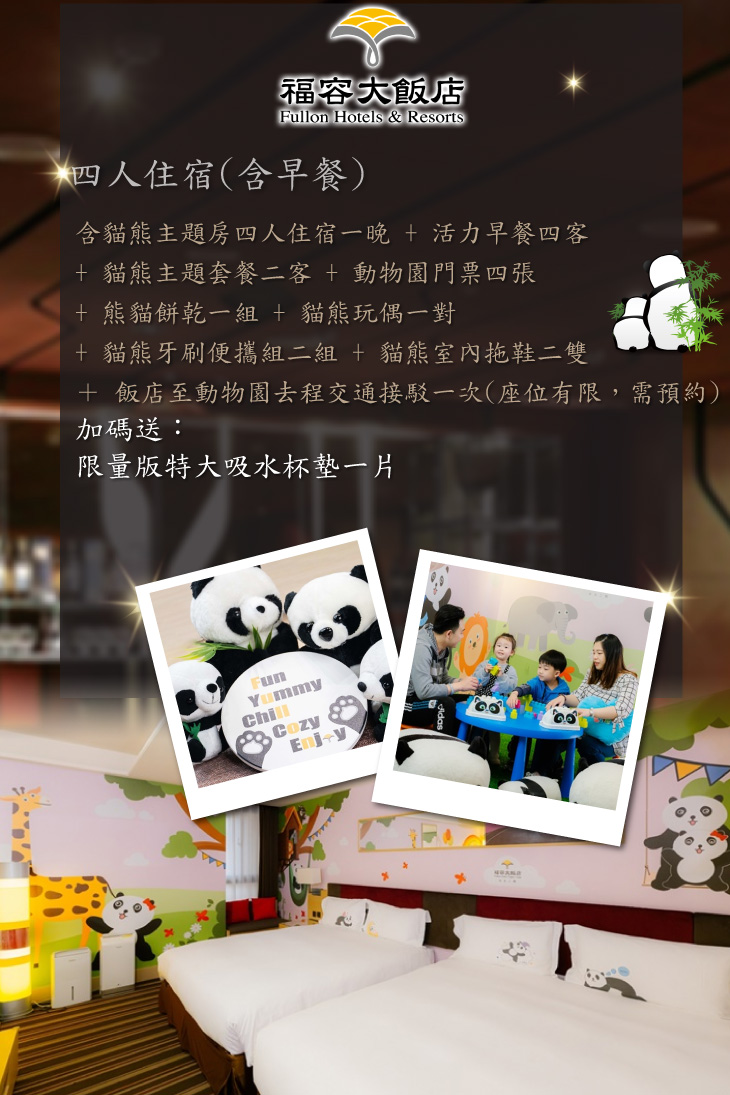 ♘ 入住贈送貓熊玩偶,另外加碼送:限量版特大吸水杯墊一片!