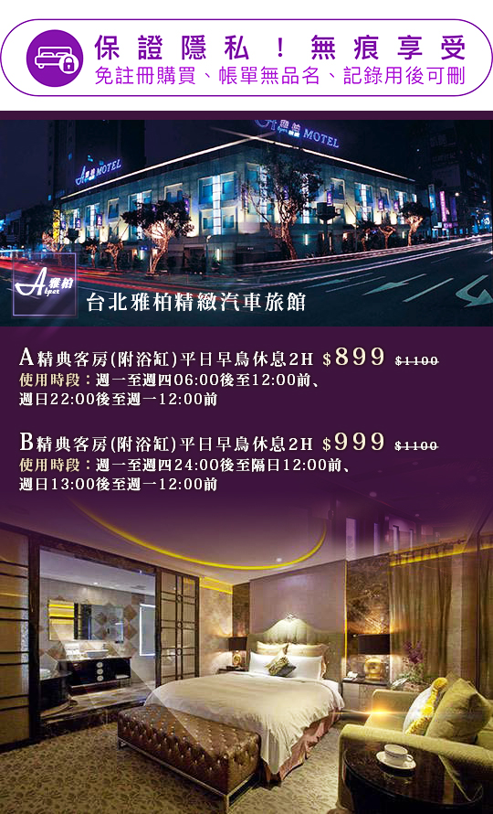 【台北雅柏精緻汽車旅館】感謝麻吉們熱烈搶購,已全數賣光光。