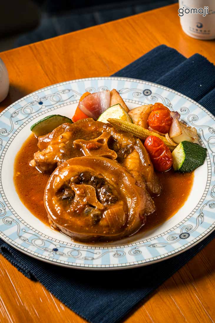 這道經典歐陸燉煮料理,以多種部位的豬肉與香腸一同細火慢燉,肉質軟嫩入味,膠質豐厚,口感層次豐富。搭配酸菜與馬鈴薯,酸香中帶著微微甘甜,完美中和肉品的厚實感。湯汁渾厚醇香,融合所有食材的精華,是一道既豪邁又溫潤的暖心料理,讓人從第一口就深陷在這份質樸卻不平凡的風味之中。
