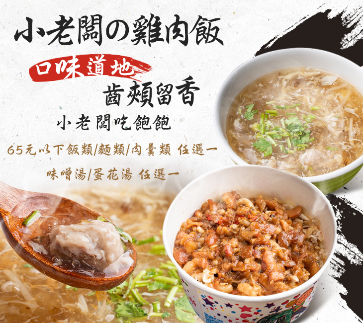 〈65元以下飯類/麵類/肉羹類 任選一 + 味噌湯/蛋花湯 任選一〉