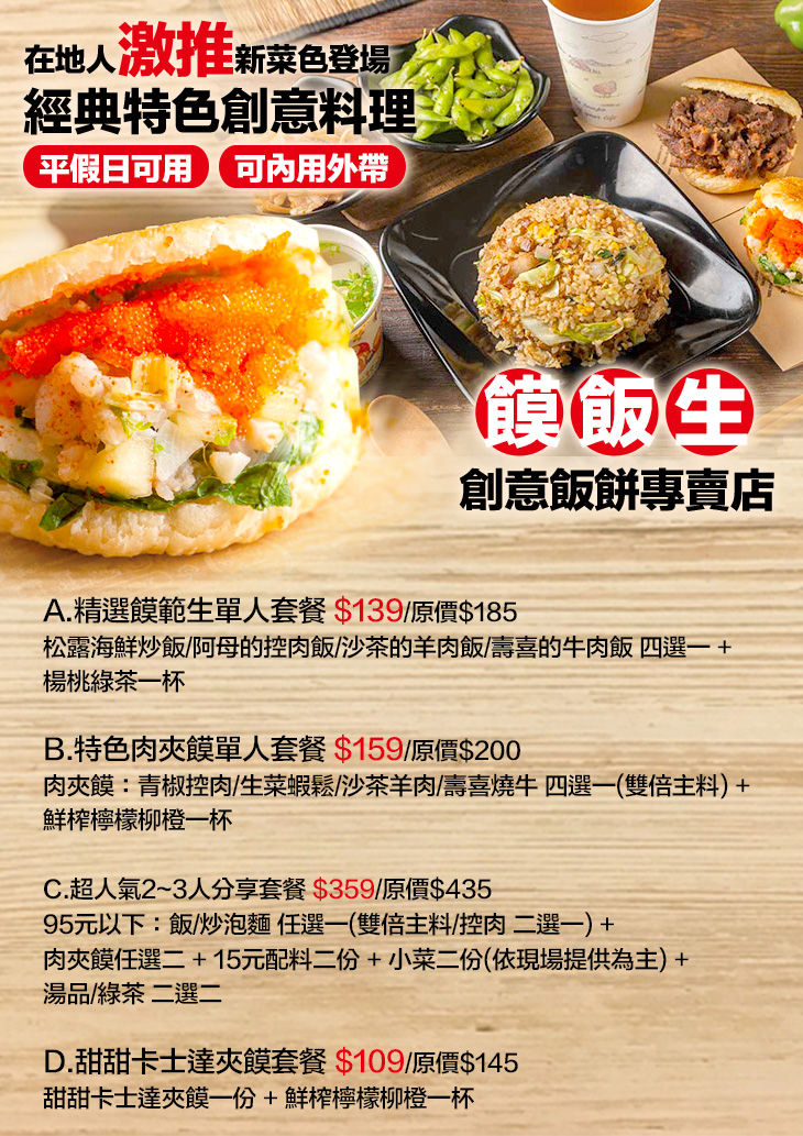 座落在新北市,鄰近於三重國小站的《饃飯生創意飯餅專賣店》,推出CP值和美味兼具的各式創意料理而贏得在地人的大力推崇,並以肉夾饃及特色炒飯為主打商品。源自於中國陝西的肉夾饃即為古漢語「肉夾于饃」之簡稱,是觀光客每每到訪必吃的在地美饌。主廚將老潼關肉夾饃加以改良,豐盈的口感配上精心研創的多種口味,每一口都將帶給您最佳的味覺享受,麻吉們也快來品嚐這份驚豔眾人的傳統美味吧!