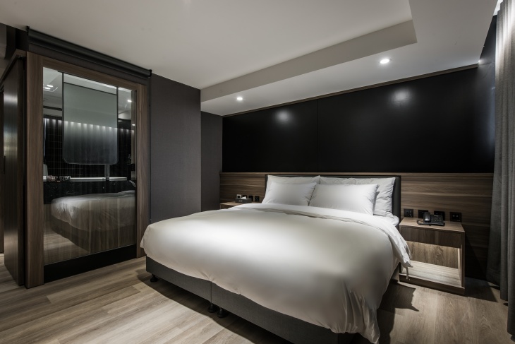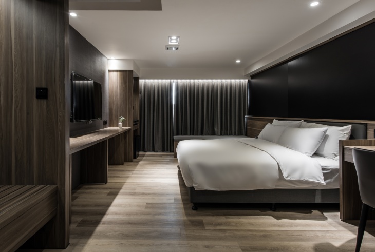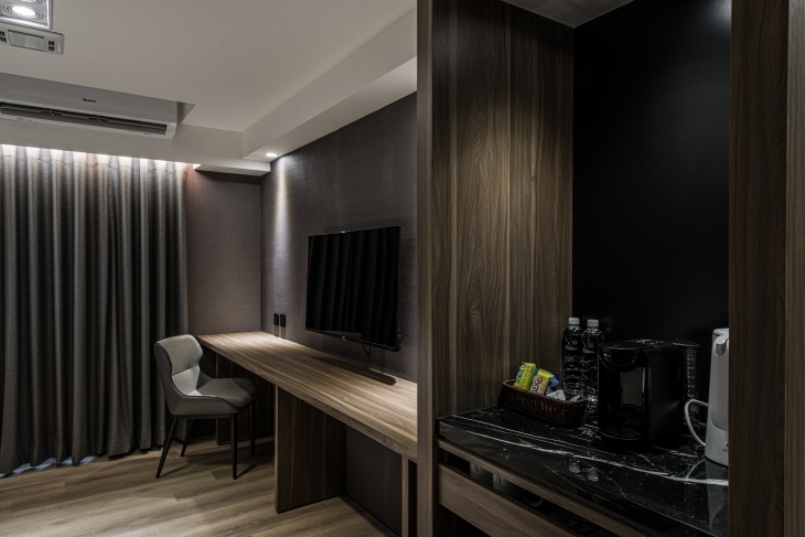 以低調簡約的設計語言,打造出一處結合城市節奏與靜謐氛圍的旅宿空間。步行可達草悟道、審計新村與台中市立美術館,無論是文青小旅行或商務差旅,都能在這裡找到理想的歇息節奏。館內整體裝潢採用木質調與灰白色系為主軸,營造出如暮色雲影般的柔和氛圍。大廳空間融合書牆、植栽與手沖咖啡吧,白天是閱讀與辦公的靜謐角落,夜晚則成為旅人交流與放鬆的小聚所。整體空間設計簡約卻不失細節,體現當代旅宿美學。房內空間寬敞明亮,搭配大片落地窗,引進自然光與城市綠意。每間房配備高品質床鋪,細緻考量旅人的日常使用習慣,無論是短住一夜或長住一週,都能感受如家般的自在。期待成為每位旅人在台中的片刻歸宿,不論晴天或雨夜,推開房門時,皆是屬於自己的寧靜與風景。