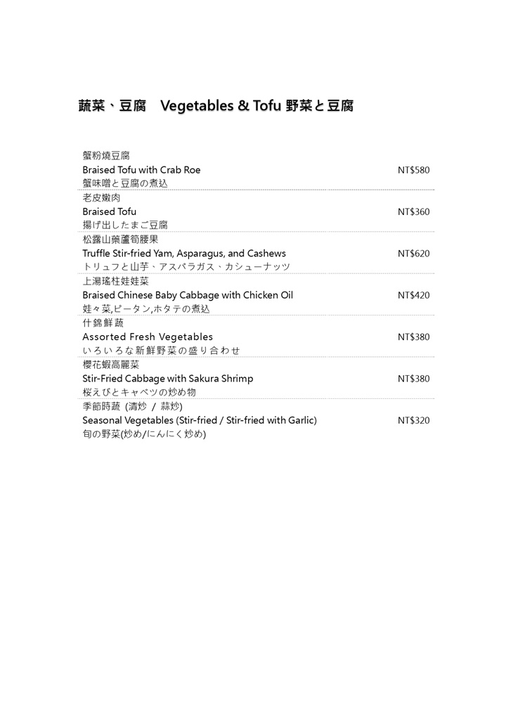 ※菜色內容依季節時令調整,實際菜色、價目依現場提供為主。