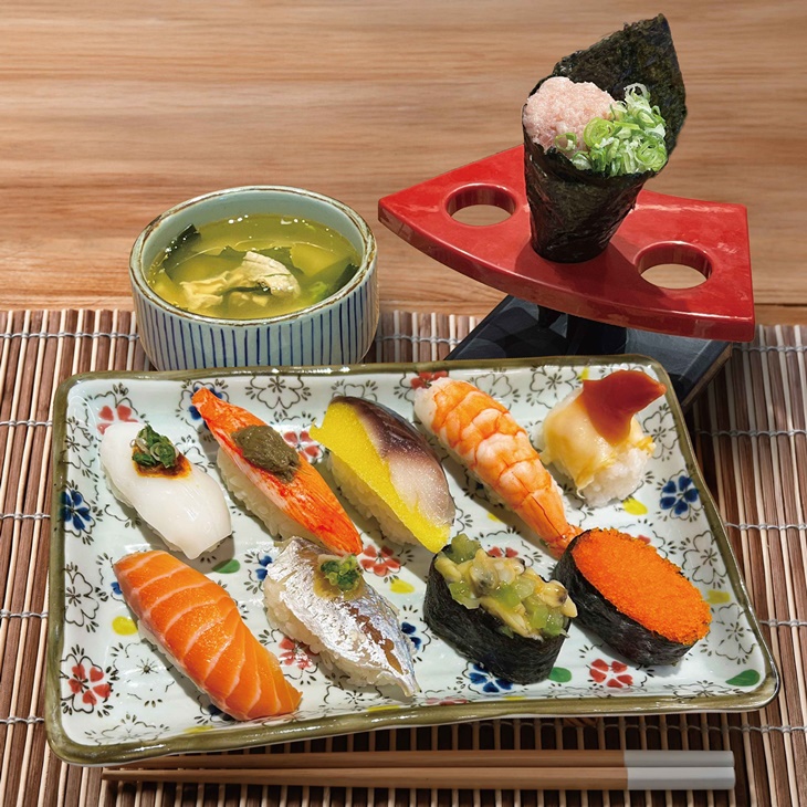 這份壽司盛合就像一場經典的日式味覺巡禮,每一貫都散發著不同的鮮度層次。從柔滑的鮭魚到辛香微辣的魷魚,再到充滿海味的蟹膏軍艦,每一口都能感受到主廚對細節的拿捏。柚香味噌的香氣輕柔交織,讓整體風味更添平衡,搭配鮪魚蔥花捲與熱騰騰的味噌湯,滿滿的幸福感讓人不自覺想再回味一次。