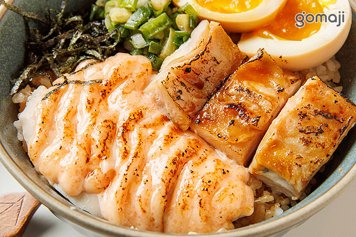 嚴選鮮嫩雞腿肉,大方鋪上厚實飽滿的明太子醬,透過精準的火侯炙燒,讓微焦香氣與明太子的鹹甜滋味交織,肉質依然飽滿多汁且層次分明。搭配盛裝精緻的小菜與清爽生菜,平衡了每一口飯的食感層次。最後啜飲一口慢火熬製、口感乾淨鮮甜的雞白湯靈魂,讓這場飽含熱情的炙燒盛宴,為您的忙碌午後注入最紮實的能量補給。