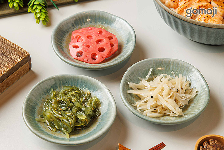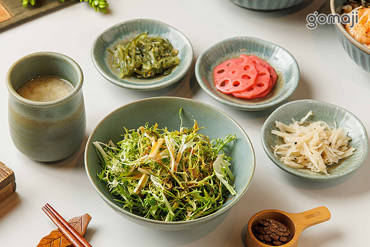 定食含:鹽漬生菜、三味小品、味噌雞白湯