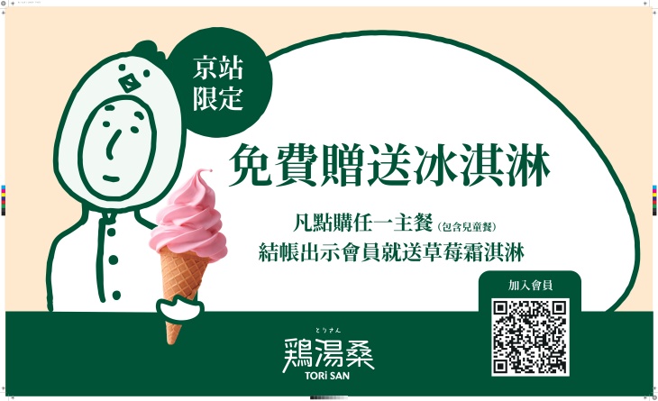 麻吉好康:(京站店)限定,持 GOMAJI 兌換券至店核銷後,即贈冰淇淋兌換券 2 張;持券兌換霜淇淋時需出示雞湯桑會員