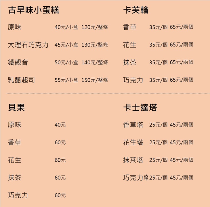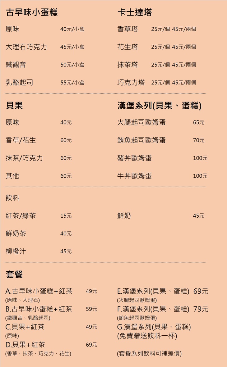 溫馨、小巧的店面予人一種親切,隨時等待您聞香而來!秉持著當日新鮮現做現烤的職人精神,用料上更是嚴謹、不馬虎,招牌古早味蛋糕,純粹的用料、樸實無華,卻創造出令人回味無窮,吃過一次便不斷想念的好滋味,是許多人心目中不可取代的甜蜜美味,不論當作早餐、下午茶或飯後甜點享用都很適合唷!