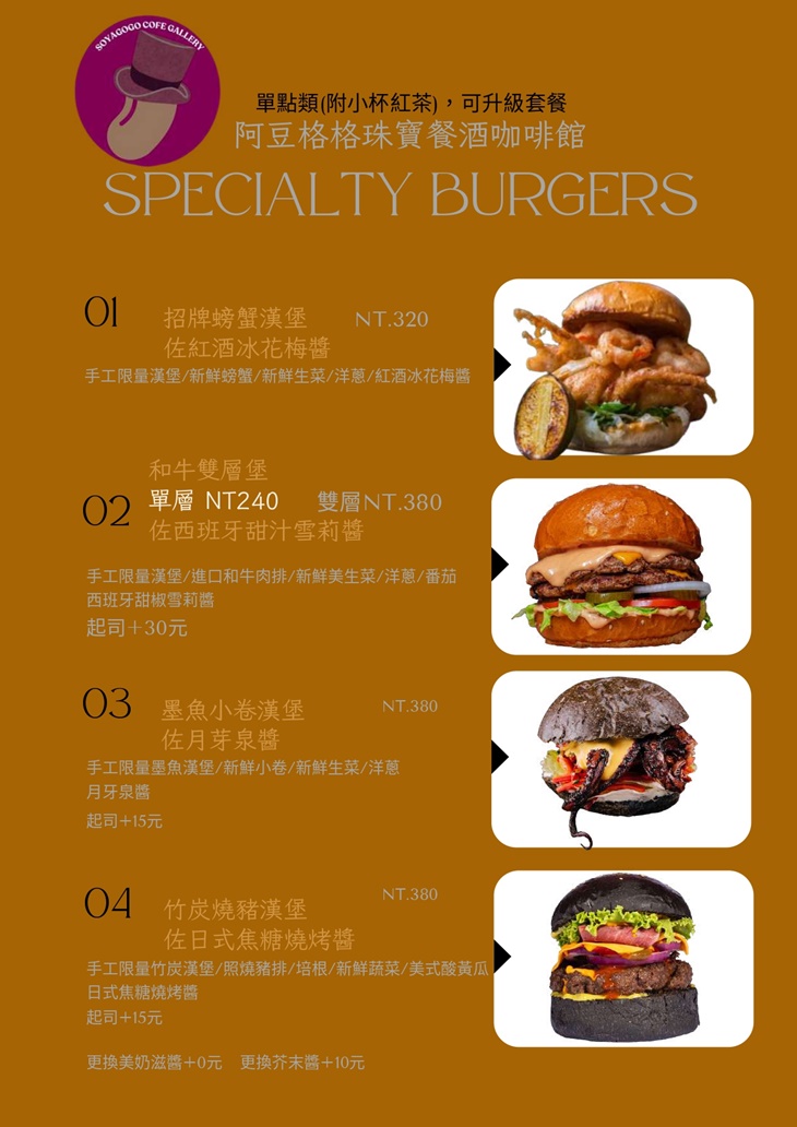 提供各式漢堡皮,需搭配漢堡餐(漢堡皮無單點)