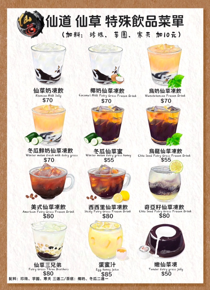 走進這間仙草專賣店,彷彿誤闖一座被現代感包裝的甜點實驗室。門面俐落有型,內裝簡潔清爽,搭配繽紛童趣的元素超加分!主打各式古法熬製的仙草飲品,濃、嫩、滑一次滿足,每一口都喝得出真材實料。無論是想解渴、嘴饞,還是純粹想來點有質感的甜,這裡都是讓人忍不住一訪再訪的療癒系基地!